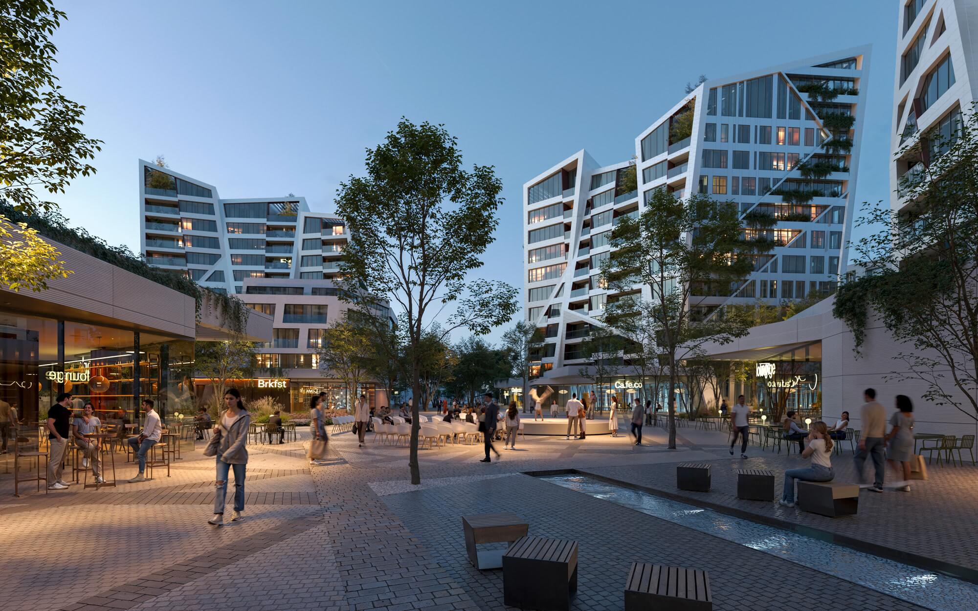 Rezidenční věže budou vymezovat prostor budoucího náměstí. Jedna z nich bude přímo sousedit s cyklostezkou a představovat tak symbolický vstup do celého území. V přízemí budov bude parter s retailovými prostory určenými pro restaurace, kavárny, volnočasové aktivity a služby. Další obchodní plochy budou lemovat centrální pěší osy a plynule navážou na cyklostezku. Tím se vytvoří příjemné prostředí pro obyvatele čtvrti Rohan City i její návštěvníky.